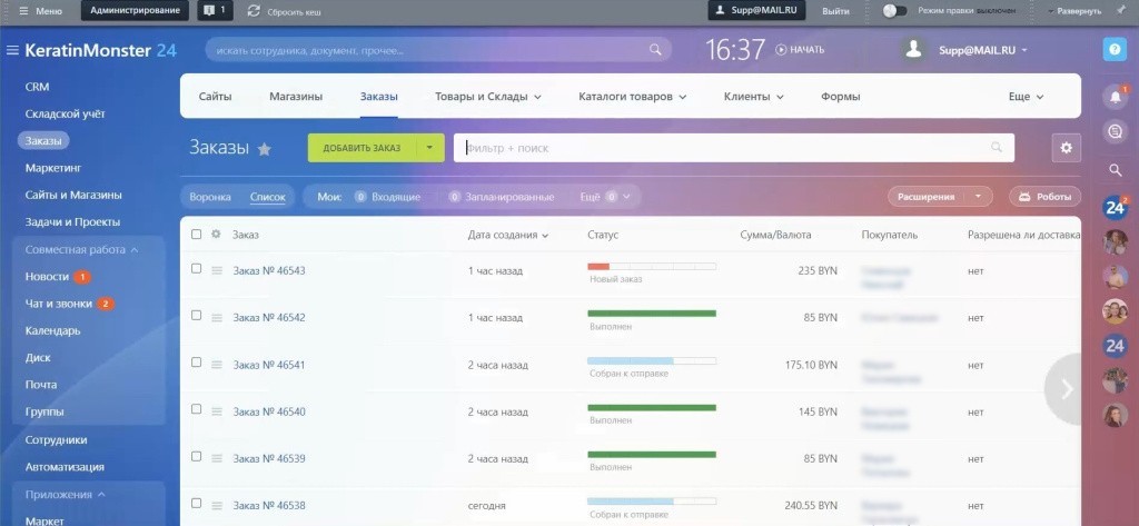 Объединить все данные о клиентах и заказах в единой системе для удобной работы сотрудников